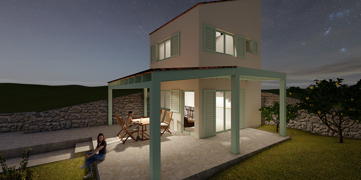 Unatoč malom prostoru sa puno ograničenja uvjetovanih prostornim planom te konzervatorskim smjernicama, kad se sretnu dva kreativna uma nastaje malo utočište za velike gušte; kućica za odmor koja će zasjati punim sjajem nakon relizacije i uređenja investitorice koja profesionalno uljepšava predmete i prostore. Investitorica je jedna sjajna prijateljica, a lokacija je Dugi Otok.