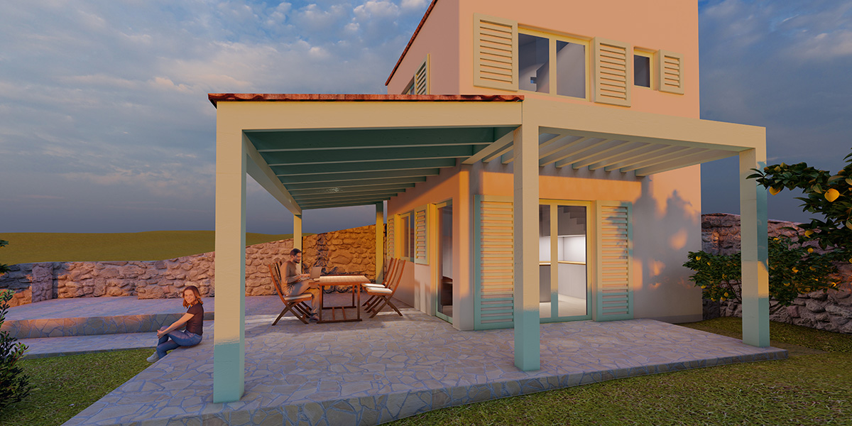 Unatoč malom prostoru sa puno ograničenja uvjetovanih prostornim planom te konzervatorskim smjernicama, kad se sretnu dva kreativna uma nastaje malo utočište za velike gušte; kućica za odmor koja će zasjati punim sjajem nakon relizacije i uređenja investitorice koja profesionalno uljepšava predmete i prostore. Investitorica je jedna sjajna prijateljica, a lokacija je Dugi Otok.